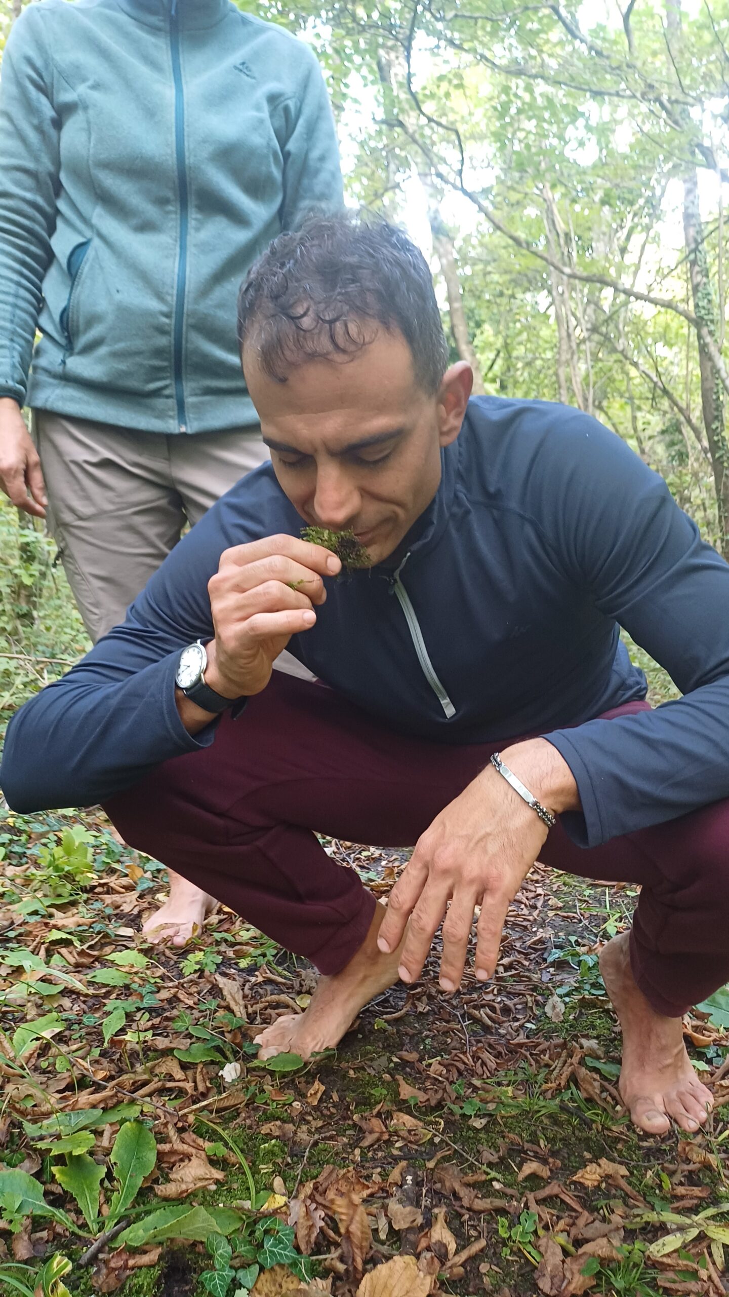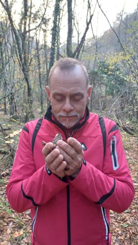 Ci sono momenti di silenzio e ascolto profondo: cammini senza parlare, ti fermi da solo nel bosco, chiudi gli occhi e lasci che siano udito, tatto e olfatto a guidarti. Ascolti i suoni vicini e lontani, senti il terreno sotto le mani, percepisci l’aria sulla pelle.